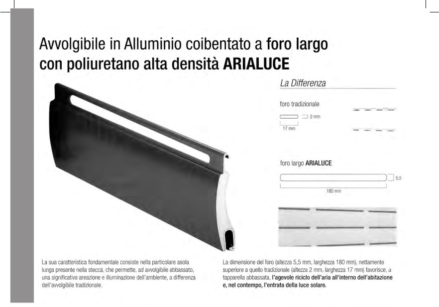 Avvolgibile in Alluminio coibentato a foro largo con poliuretano alta densità ARIALUCE