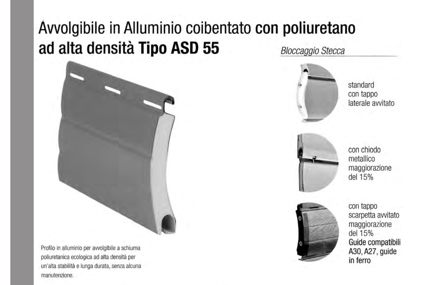 Avvolgibile in Alluminio coibentato con poliuretano alta densità Tipo ASD 55