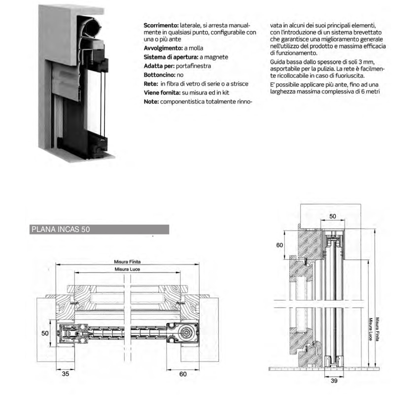 Plana – Zanzariera senza bottoncini ad incasso a scorrimento laterale